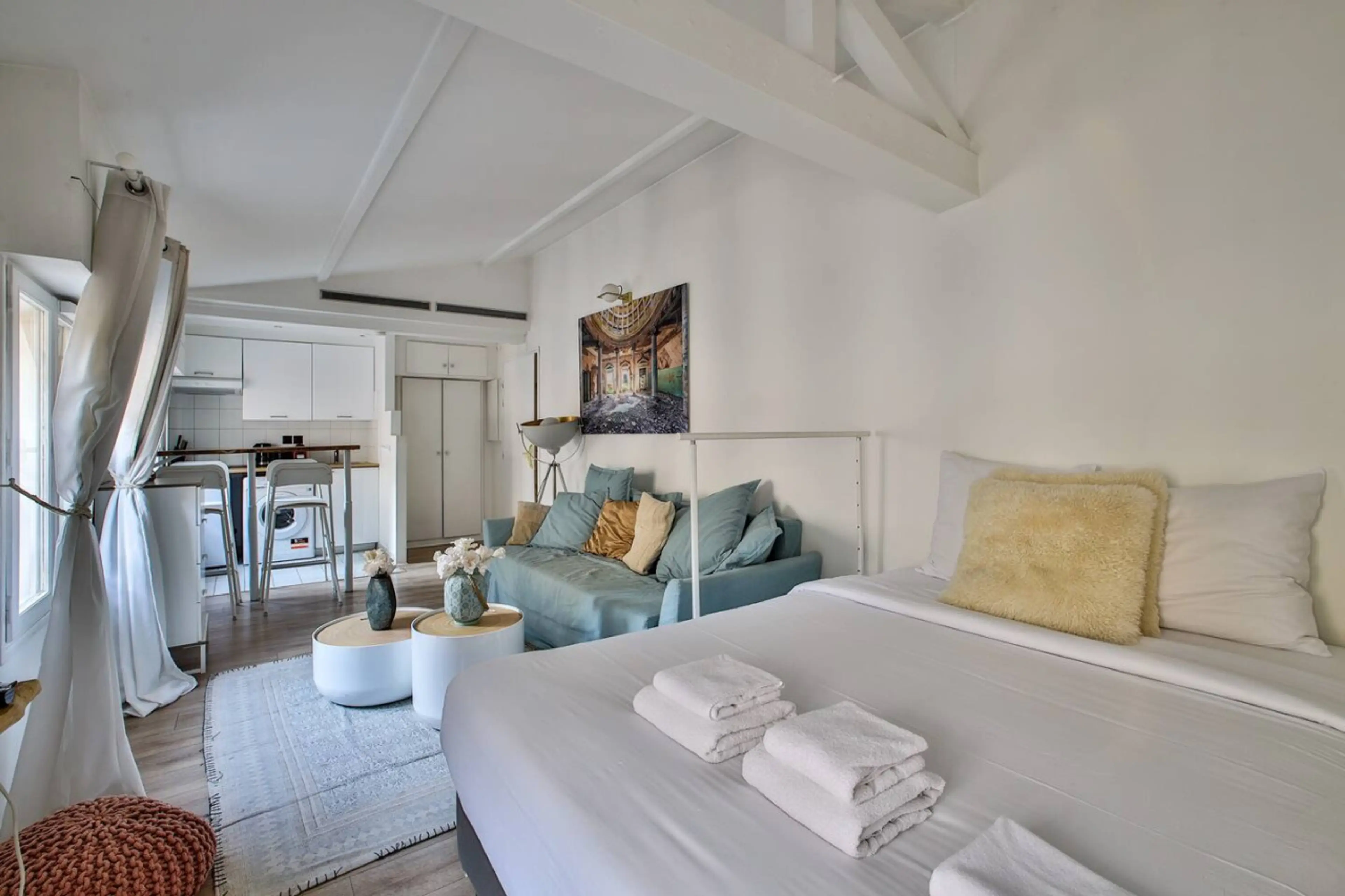 🏠 4th floor with elevator ❄️☀️ Reversible air conditioning 🛋️ Living room with a sofa bed and a double bed 📺 TV & Wi-Fi 🍳 Fully equipped kitchen: stovetop, Nespresso machine, kettle, mini-fridge 🚿 Bathroom 🚽 Toilet 🛏️ Foldable baby bed 🧺 Sheets and towels 🫧 Washing machine Less than a 2-mi...